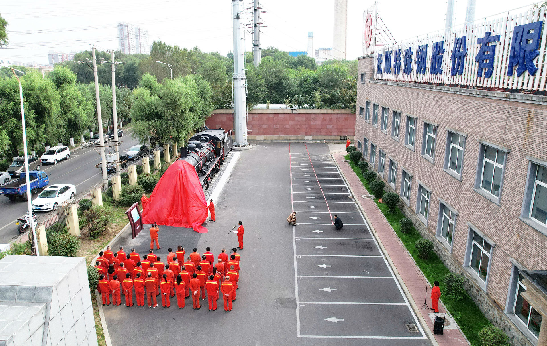 9月29日上午9時08分,撫順特鋼在辦公樓北側(cè)隆重舉行蒸汽機(jī)車文創(chuàng)項目落成揭幕儀式。撫順特鋼第一副總經(jīng)理穆立峰,常務(wù)副總經(jīng)理、黨委副書記、紀(jì)委書記、工會主席祁勇以及各單位員工代表50余人參加揭幕儀式。公司工會副主席、組織人事處處長朱志勇主持揭幕儀式。